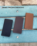 A sleek and spacious leather long wallet designed for everyday use. Keeps your cash, cards, and IDs organized in one stylish place.